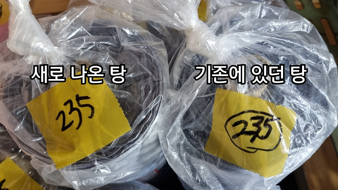 설령 기존에 있던 탕과 새로 나온 탕이 색상톤 차이가 거의 없다고 해도 색상톤에 예민한 거래처나 손님한테는 되도록이면 같은 탕끼리 해서 보내는 것이 좋다.