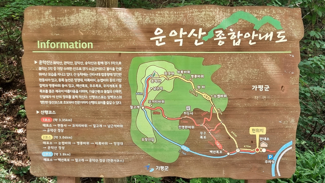 그러다가 어느 정도 숙련이 된다면 가평이나 포천 코스로 가서 1코스와 2코스를 다 이용해 본다면 운악산의 멋진 특색과 풍경을 감상할 수 있을 것이다.