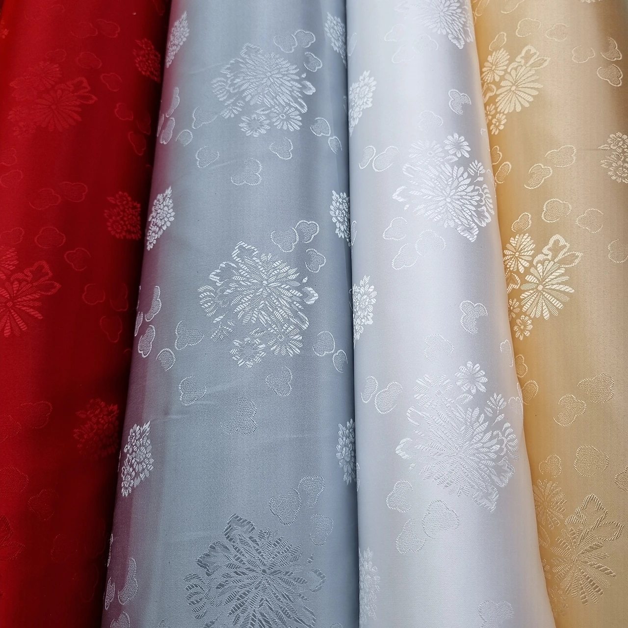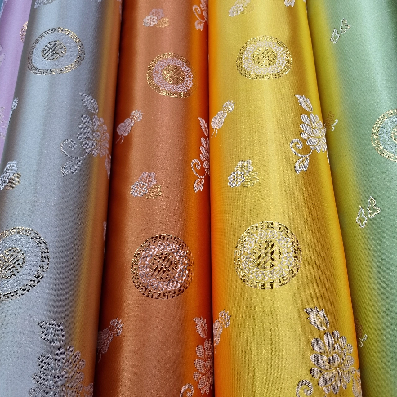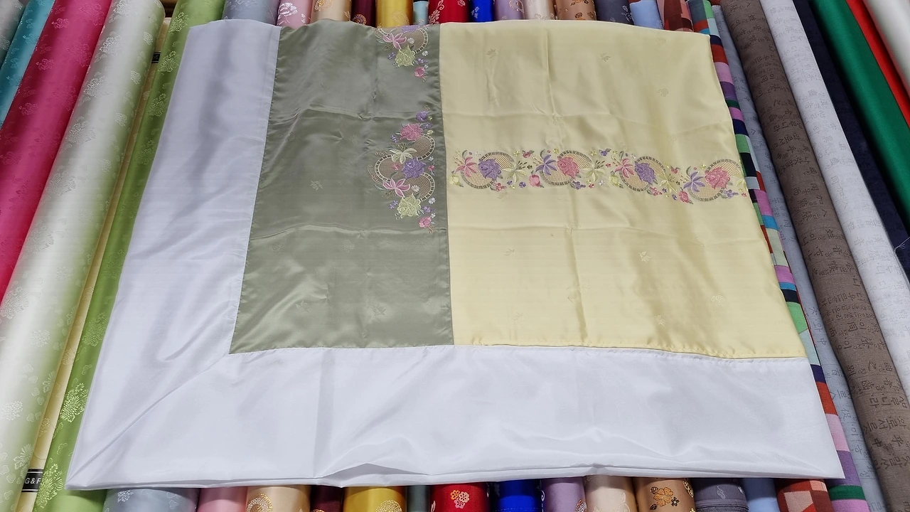 양단은 색실로 짠 비단의 일종인데 우리가 하는 양단은 물빨래가 가능한 화섬지 양단이고, 문양은 일반 문양, 이중으로 짜여진 투톤 문양, 금사실로 짜여진 금사 문양 등 다양하게 있다.