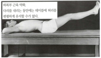 리버스 크런치도 위에서 설명드렸던 크런치와 마찬가지로 다리가 테이블에 가까워질 때 우세해진 허리 근육이 골반의 움직임을 방해하게 함으로써 골반이 앞쪽으로 기울어지게 만들면서(전방 경사) 허리의 아치가 더 커지게 됩니다. 그렇기 때문에 복부의 느낌보다는 허리의 느낌으로 운동을 할 수밖에 없게 됩니다.