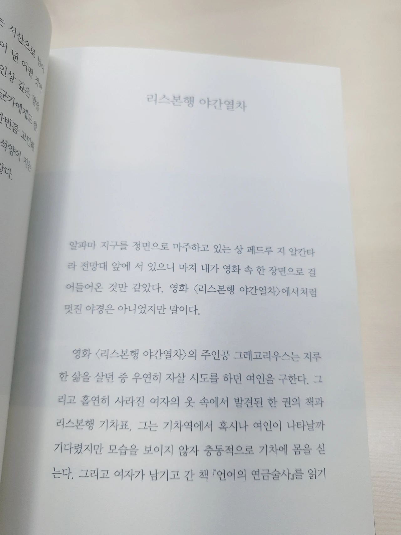 리스본행 야간열차의 그 장면은 나에게 큰 영향을 준 장면이다.