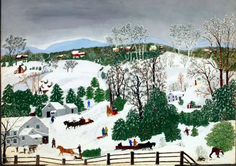 화가 모지스 할머니의 '크리스마스 트리 찾아나서기'(1946)!