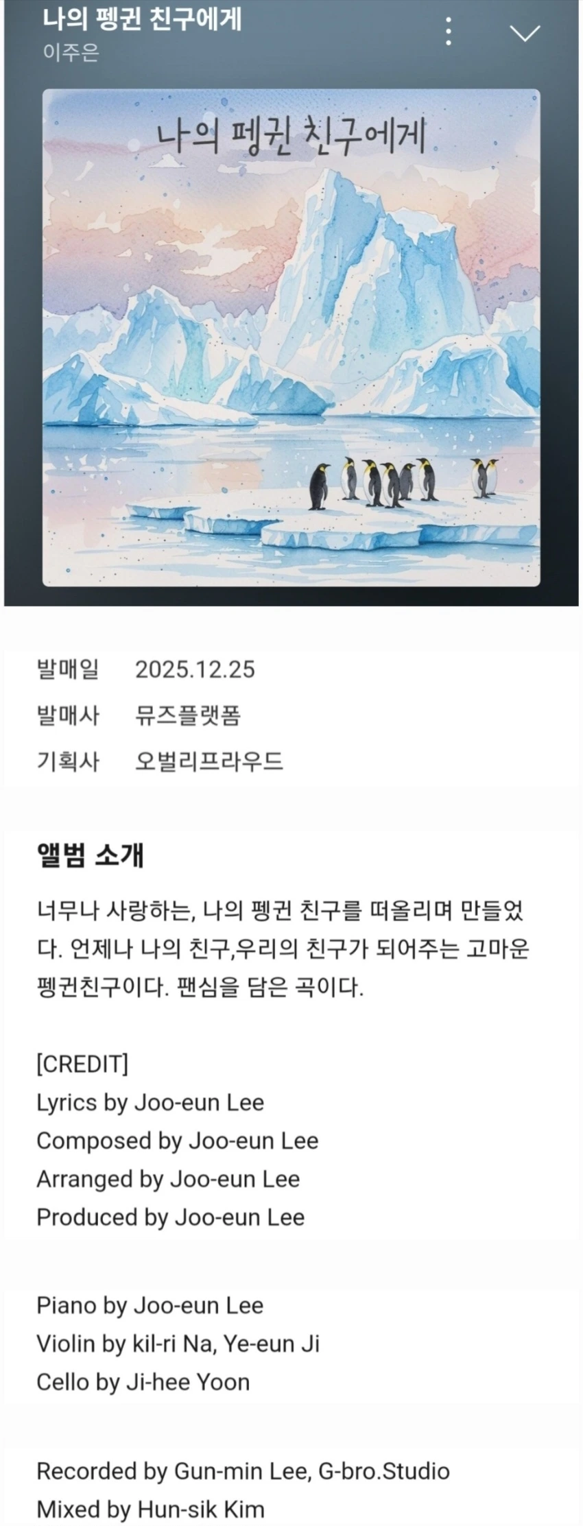 그리고 항상 바래왔던 음원이 오늘 크리스마스날에 발표되었다.