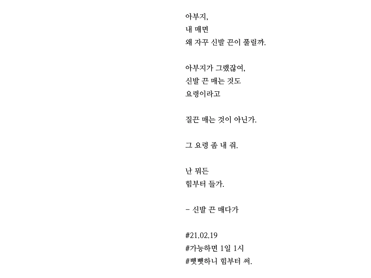 [가능하면 1일 1시] 신발 끈 매다가