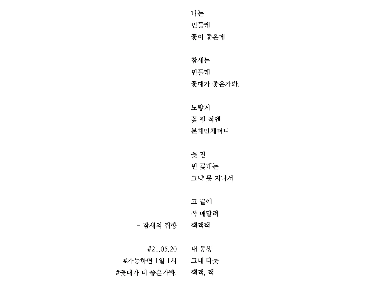 [가능하면 1일 1시] 참새의 취향