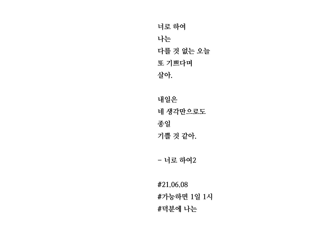 [가능하면 1일 1시] 너로 하여2
