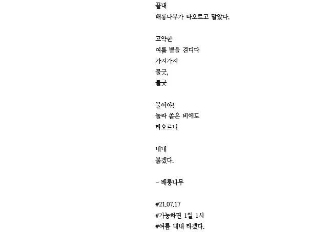 배롱나무가 타오르고 말았다.