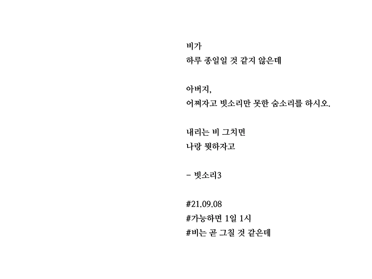 어쩌자고 빗소리만 못한 숨소리를 하시오.