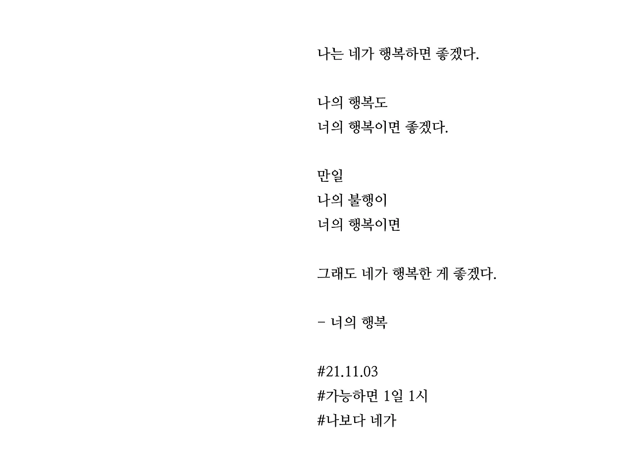 나는 네가 행복하면 좋겠다.