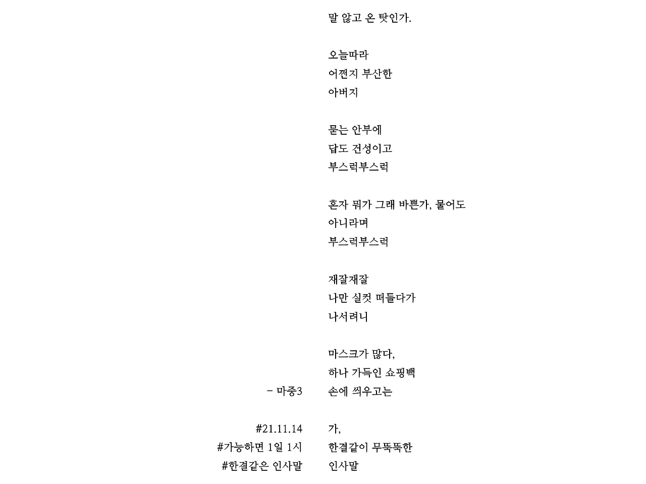 #한결같은 인사말