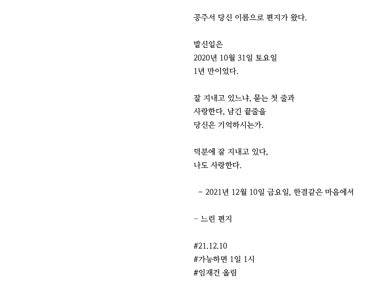 - 2021년 12월 10일 금요일, 한결같은 마음에서