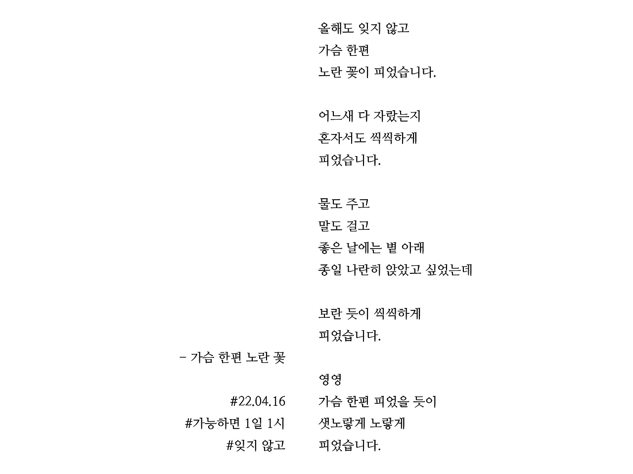 [가능하면 1일 1시] 가슴 한편 노란 꽃
