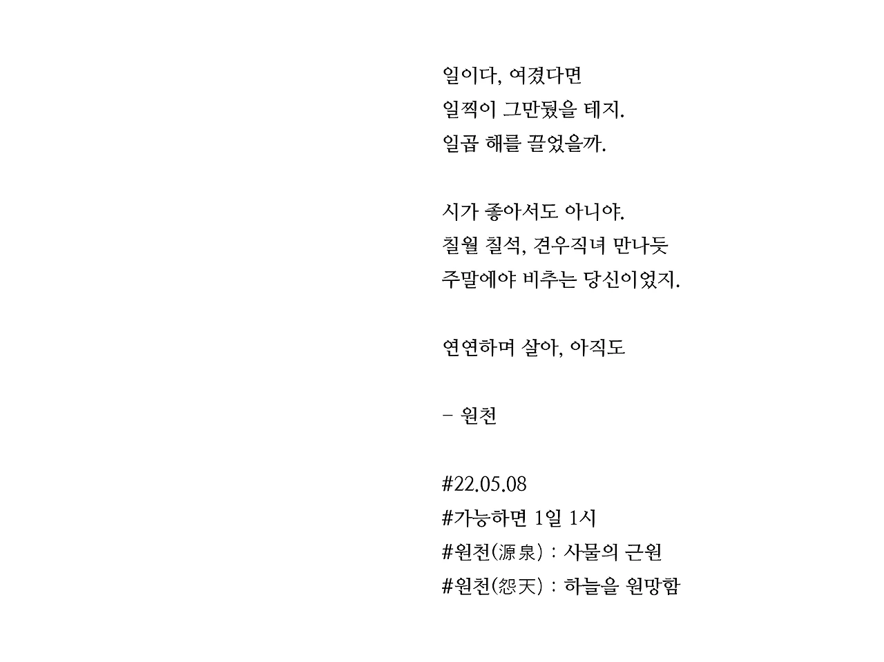 원천(源泉) : 사물의 근원 / 원천(怨天) : 하늘을 원망함
