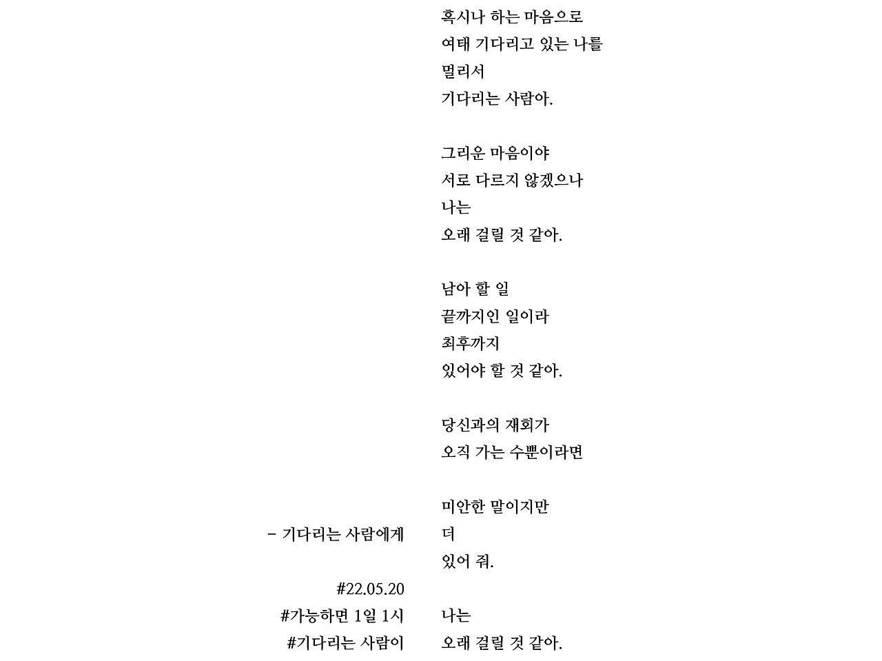 [가능하면 1일 1시] 기다리는 사람에게