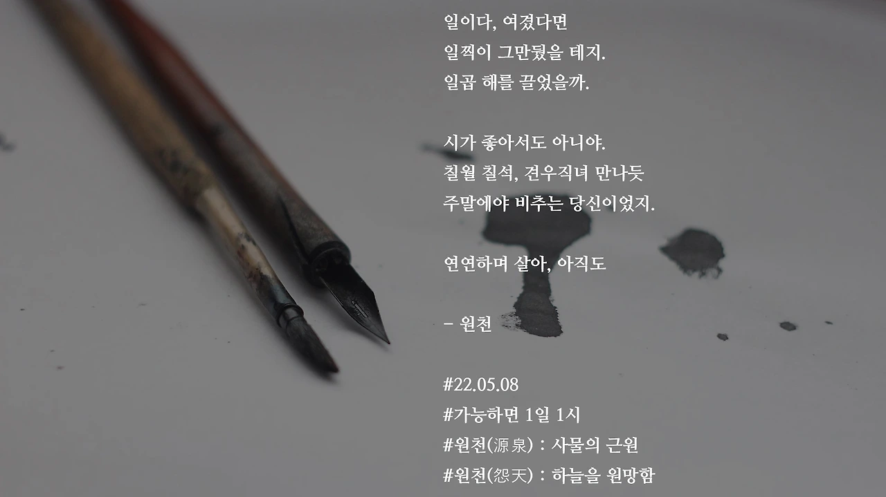 원천(源泉) : 사물의 근원 / 원천(怨天) : 하늘을 원망함