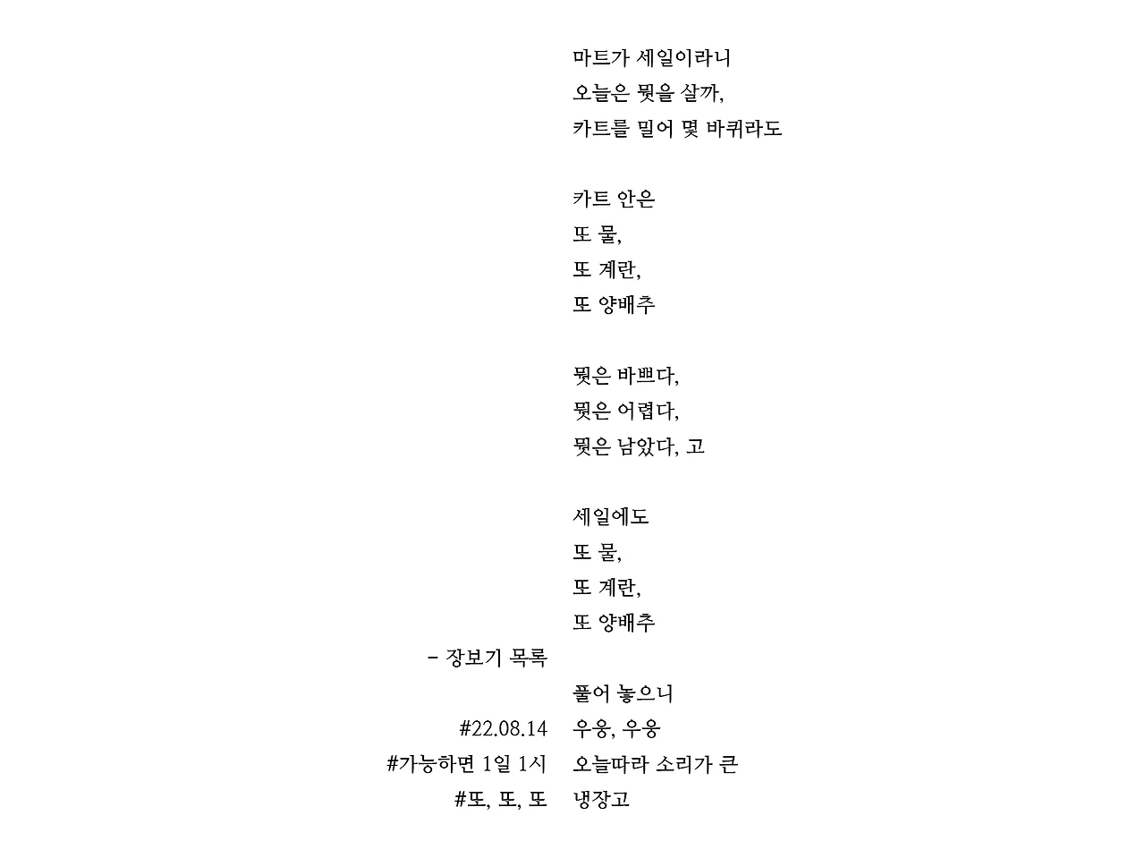 [가능하면 1일 1시] 장보기 목록