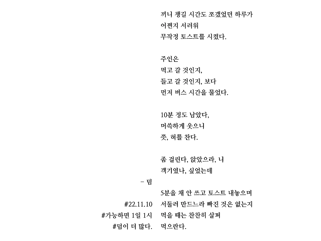 5분을 채 안 쓰고 토스트 내놓으며