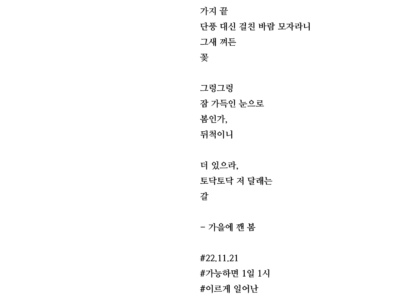 [가능하면 1일 1시] 가을에 깬 봄