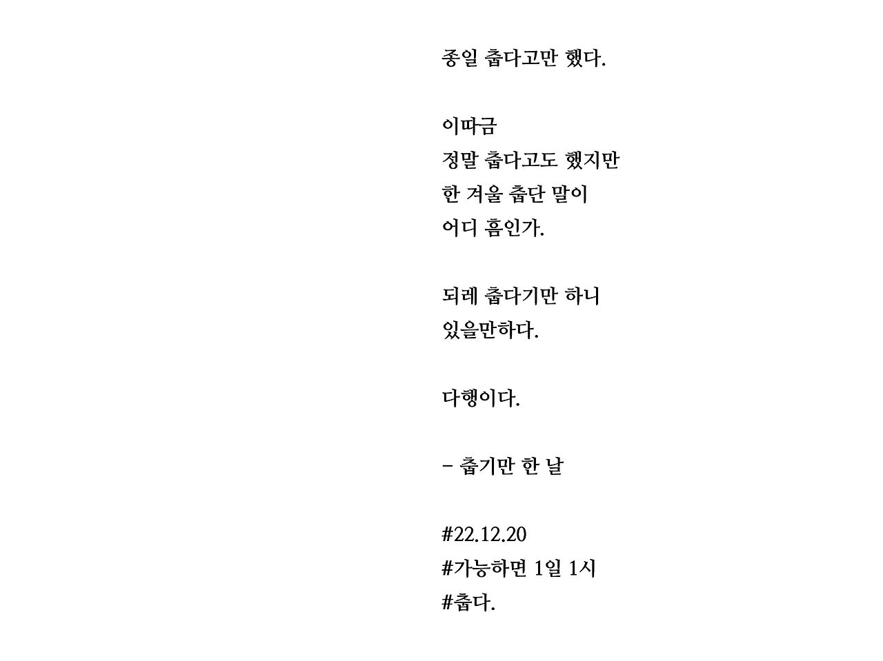 [가능하면 1일 1시] 춥기만 한 날