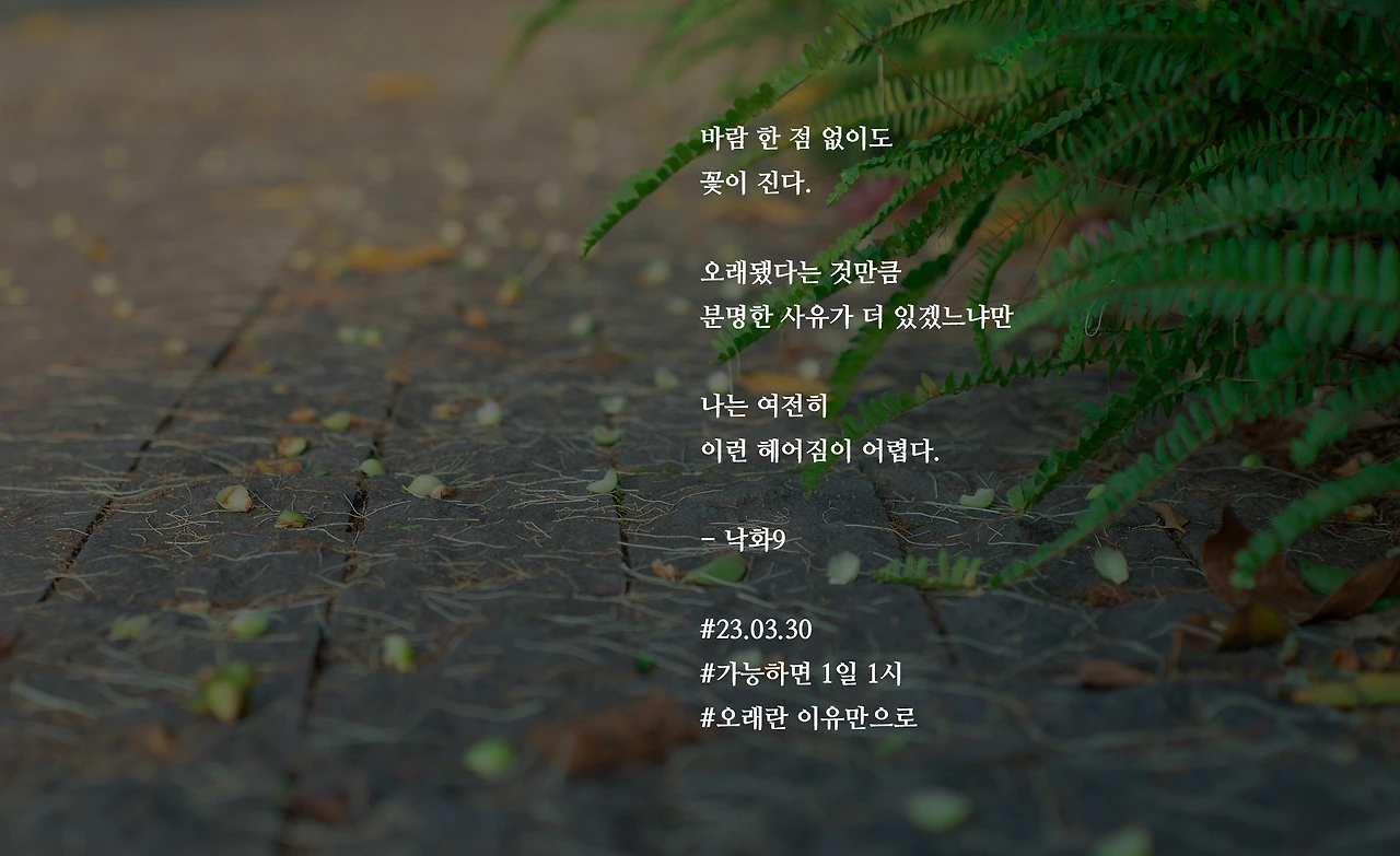 : 시간은 한 쪽으로만 흘러 다시 붙들기도 어렵다.