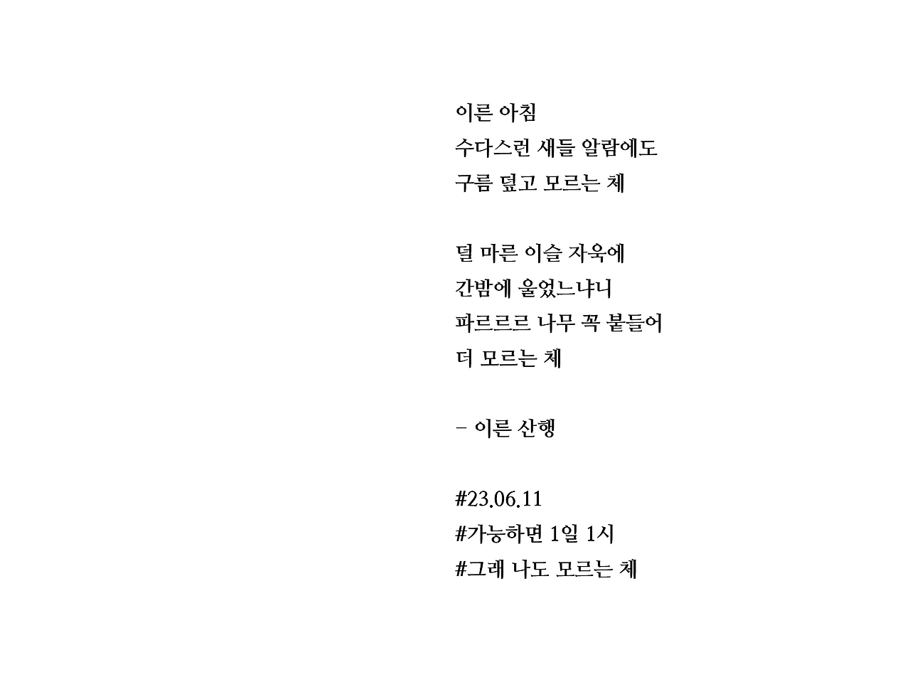 [가능하면 1일 1시] 이른 산행
