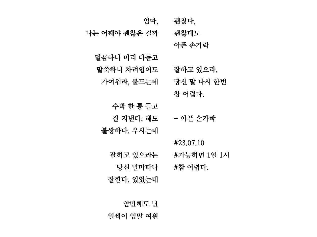 [가능하면 1일 1시] 아픈 손가락