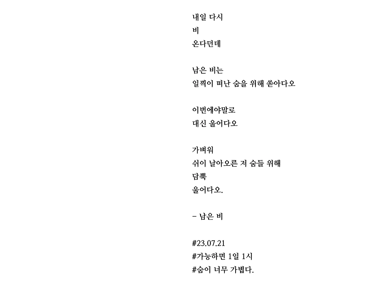 숨이 너무 가볍다.