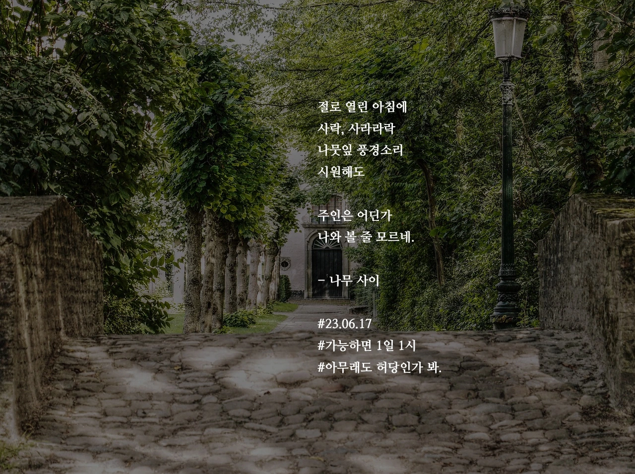 : 어디 가셨는가, 나뭇잎만 반기네.