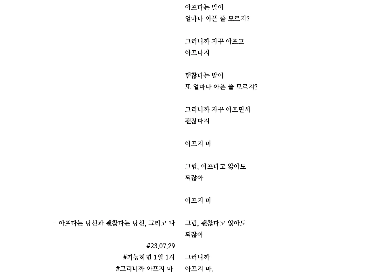 - 아프다는 당신과 괜찮다는 당신, 그리고 나