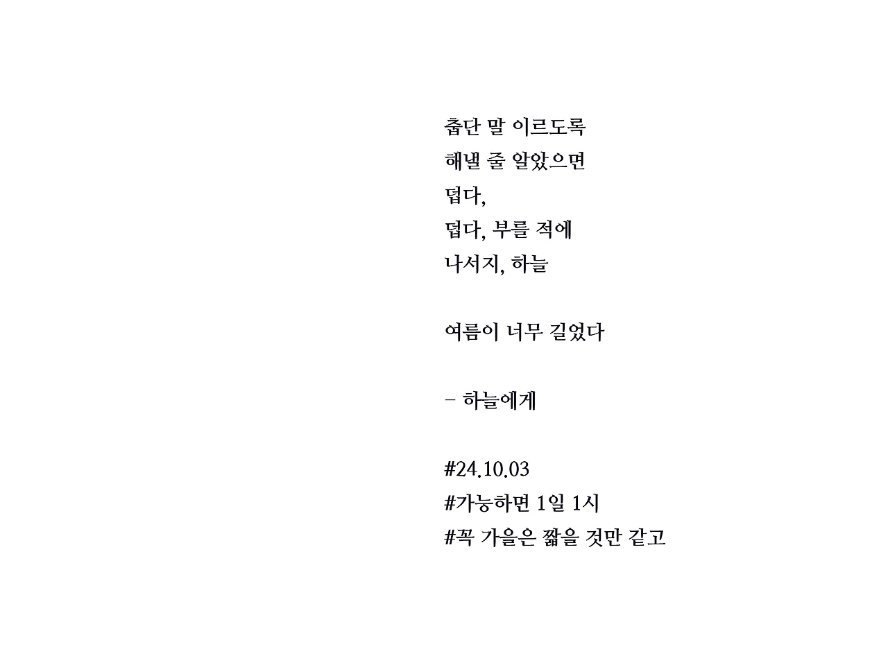 [가능하면 1일 1시] 하늘에게