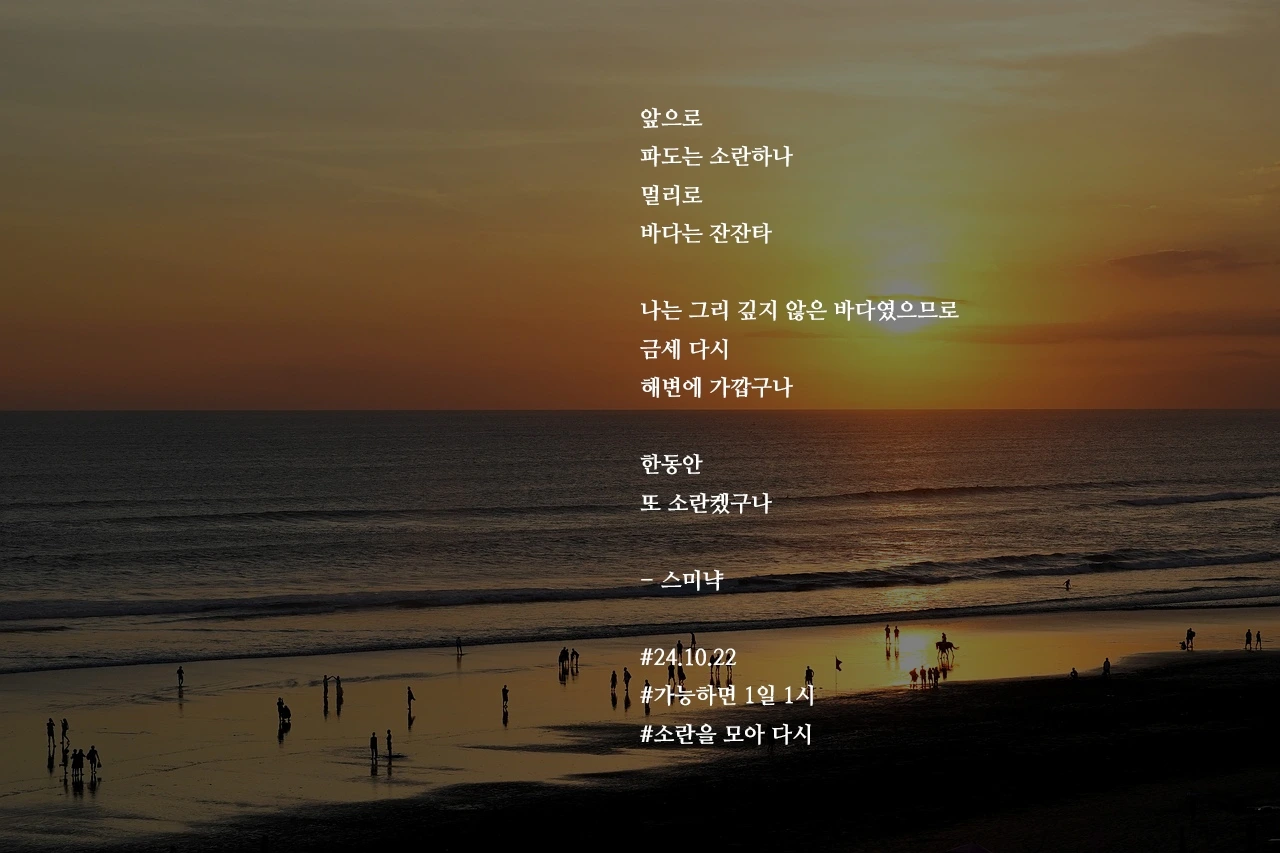 : 한 점 한 점 파도를 모아 바다가 되어야지