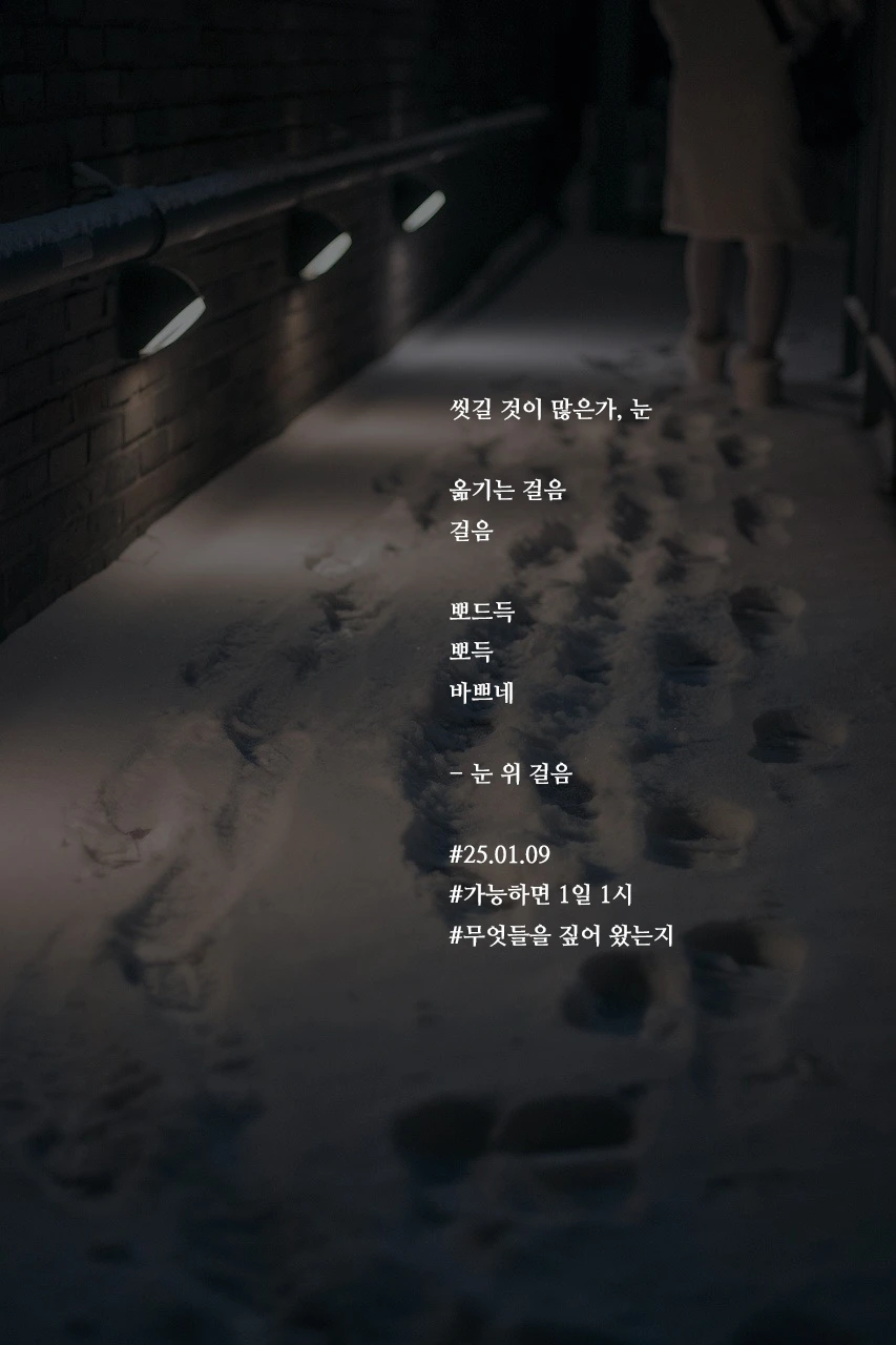 씻길 것이 많은가, 눈옮기는 걸음걸음뽀드득뽀득바쁘네- 눈 위 걸음#25.01.09#가능하면 1일 1시#무엇들을 짚어 왔는지