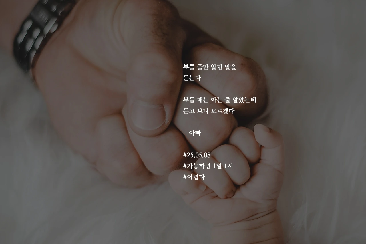 부를 줄만 알던 말을듣는다부를 때는 아는 줄 알았는데듣고 보니 모르겠다- 아빠#25.05.08#가능하면 1일 1시#어렵다 작가의 말: 부를 줄만 알았던 말, 금방 들으려니
