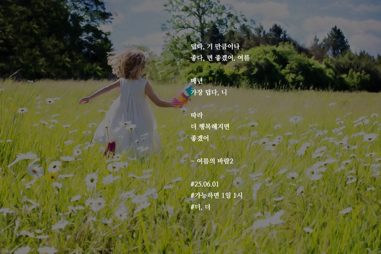 덥다, 기 만큼이나좋다, 면 좋겠어, 여름매년가장 덥다, 니따라더 행복해지면좋겠어- 여름의 바람2#25.06.01#가능하면 1일 1시#더, 더