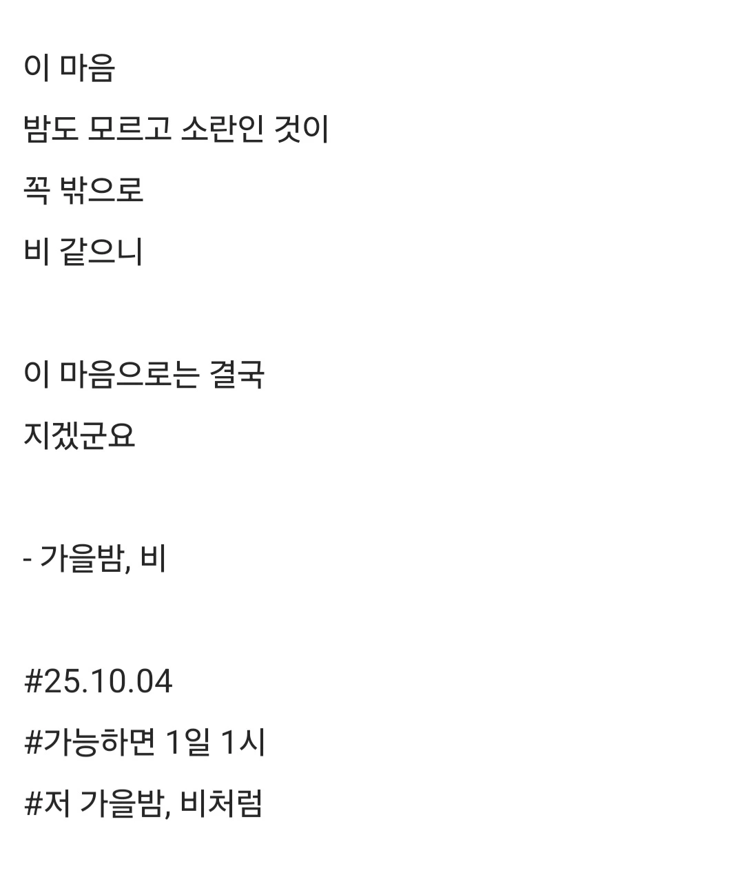 #저 가을밤, 비처럼