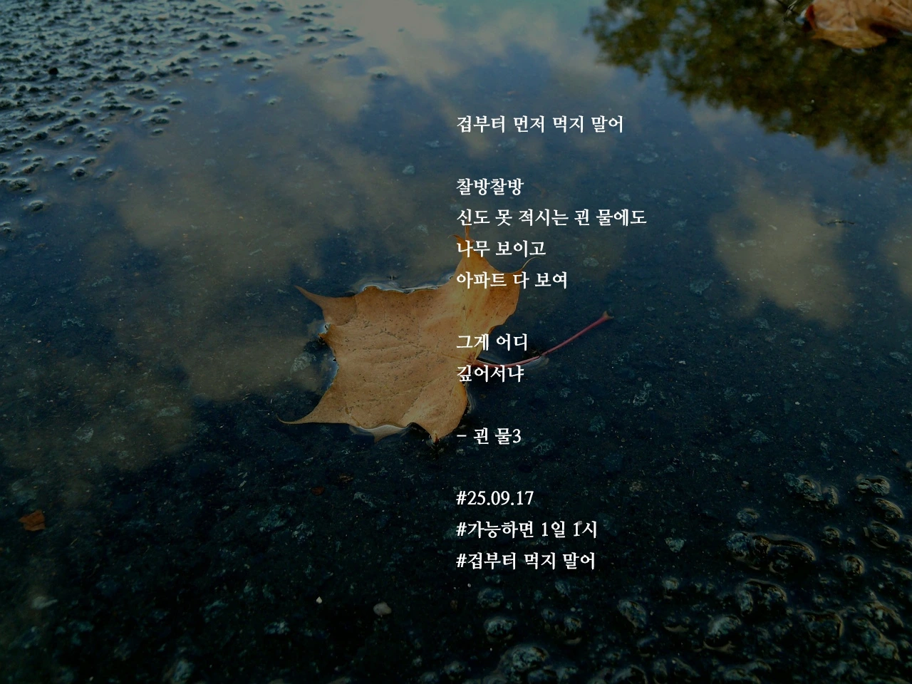 겁부터 먼저 먹지 말어찰방찰방신도 못 적시는 괸 물에도나무 보이고아파트 다 보여그게 어디깊어서냐- 괸 물3#25.09.17#가능하면 1일 1시#겁부터 먹지 말어