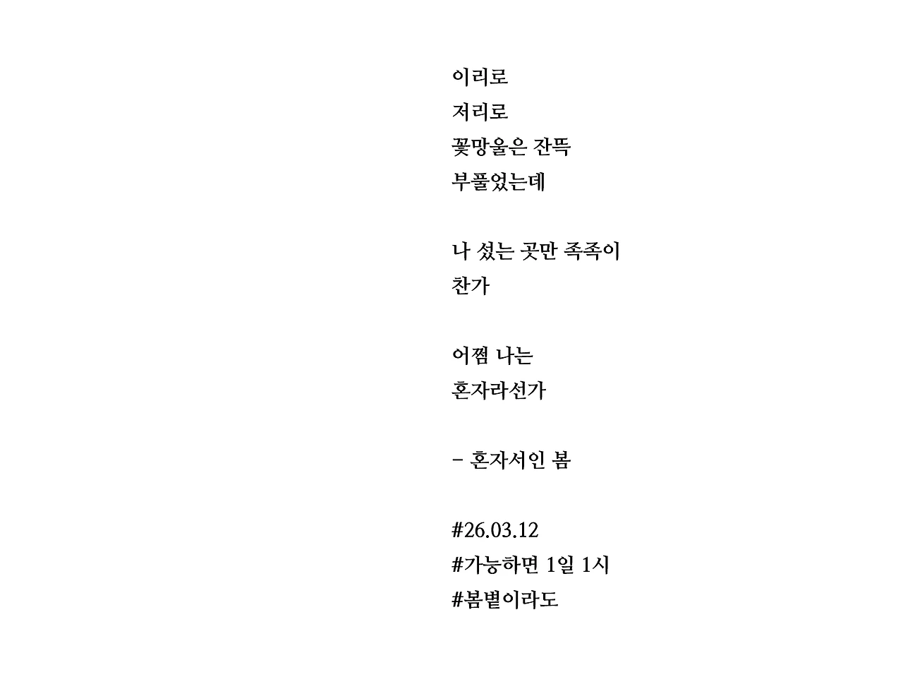 [가능하면 1일 1시] 혼자서인 봄