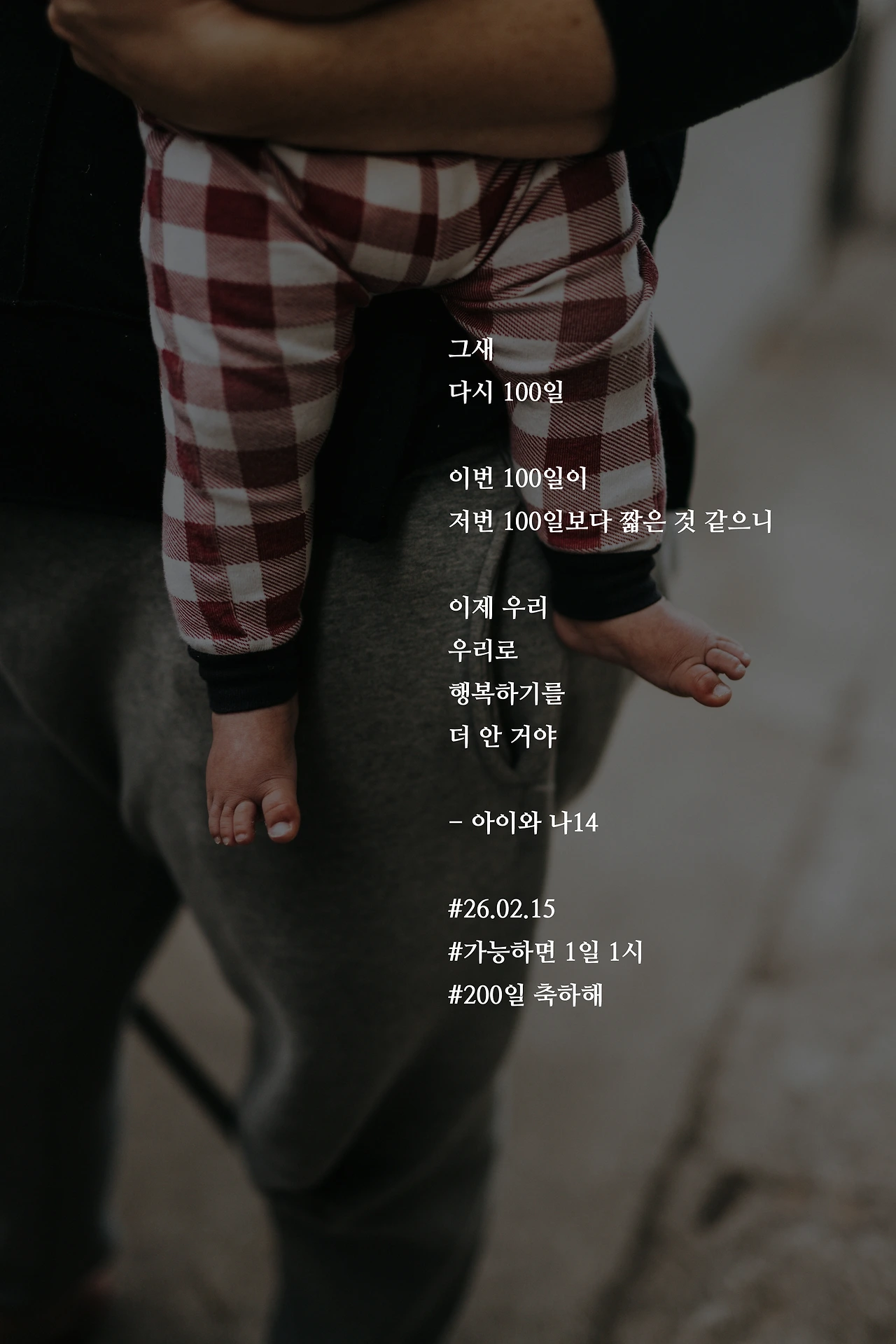 그새다시 100일이번 100일이저번 100일보다 짧은 것 같으니이제 우리우리로행복하기를더 안 거야- 아이와 나14#26.02.15#가능하면 1일 1시#200일 축하해 작가의 말: 부지런히 우리로