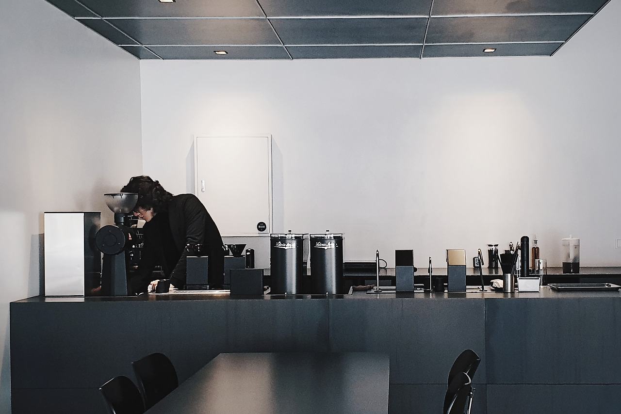 머신부터 브루잉 도구까지 온통 검은색으로 뒤덮인 바에는 이리저리 바빠 보이지만 올블랙으로 차려입어 시간이 느리게 흘러가는 것 같은 느낌의 멋진 직원분이 기다리고 있었다.
