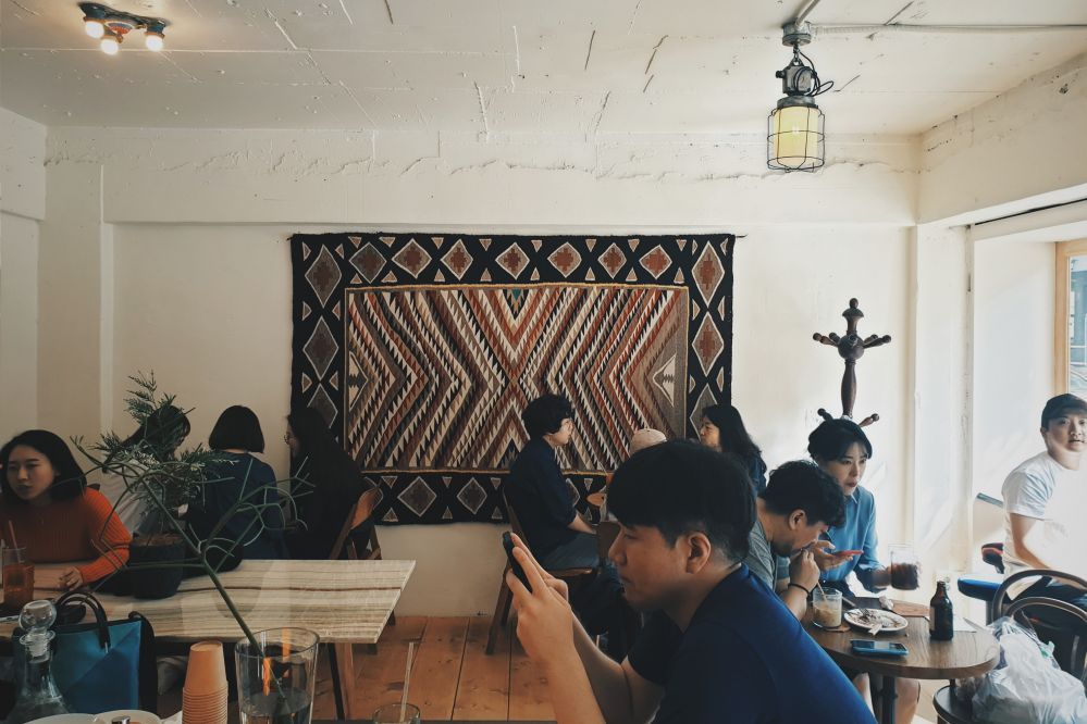 자, 다시 정신 차리고 주변을 둘러보자. 보통의 카페엔 잘 있을 것 같지 않은 인테리어 소품들이 특히 눈에 띈다. 서부적인 느낌에 양념을 더하는 이 소품들은 사장님 부부의 집에서 가져온 물품이라고 한다. 괜히 장식되어 있는 순록의 두개골을 보고는 뜨끔 한다. 구석구석 빈틈 없이 비전스트롤의 아이덴티티가 충만한 인테리어 소품이 자리 잡고 있다. 게다가 넓은 창을 통해 따사롭게 비치는 햇살은 덤이다. 사람이 많고 각 테이블에서 흘러나오는 수다 때문에 시끄럽다고 생각할 수 있지만, 왠지 서부적인 느낌의 배경과 잘 묻어나서 백색소음처럼 느껴지기도 했다. 필자는 이날 책을 읽었는데 학창시절 공부 잘하는 학생들의 필수품이었던 엠씨스퀘어를 쓴 것 마냥 집중이 잘 되었다.