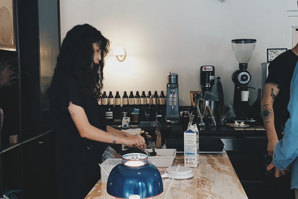 이렇게 멋진 오너 바리스타 부부 두 분은 각각 테일러커피와 왓코 등 꽤 핫한 곳에서 오랜 기간 바리스타와 매니저로 일한 경력이 있는 베테랑 바리스타다. 그런 곳이라면 당연히 에스프레소를 마셔보는 게 인지상정! 에스프레소라면 티스푼으로 스윽 저어보기도 하고 컵을 돌려가며 크레마층과 커피층을 적당히 섞으며 홀짝홀짝 맛을 음미해야 하지만 필자는 너무 맛있어서 원샷해버렸다. 나란 놈.. 허허.. 그렇게 눈 깜짝할 새에 사라져버린 에스프레소를 뒤로하고 버터 푸딩과 아메리카노를 추가로 주문했다.