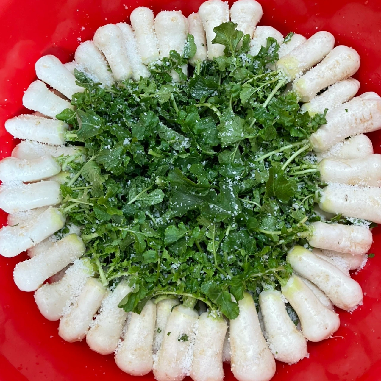 총각김치를 담는다 하면 엄마와 할아버지는 할머니 곁에서 함께 알타리 무를 다듬어. 뾰족한 뿌리를 잘라내고, 시든 잎을 잘라내고, 무청과 붙어있는 부분을 깨끗하게 다듬어야 해. 그리고 쪽파는 뿌리를 잘라내고 누렇게 뜬 잎을 떼어내지. 그런 뒤에는 물에 담가두었다가 무와 무청에 붙어있는 흙을 떼어내고 깨끗이 씻는 거야. 그리고 굵은소금에 총각무를 절여야 해. 근데 이게 참 까다로워. 무와 잎이 소금에 절여지는 시간이 다르니까. 어느 날 궁금해서 할머니께 비결을 여쭤봤더니 이렇게 무는 무대로, 잎은 잎대로 모아주고, 무가 겹쳐지는 곳에는 잎보다 더 많은 소금을 뿌려주는 거래.