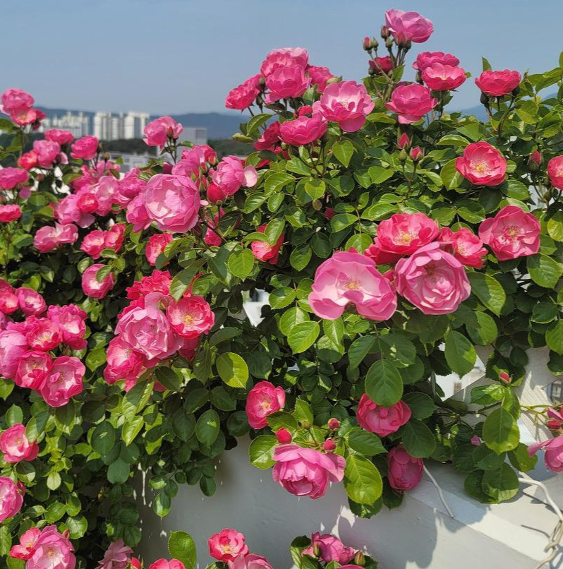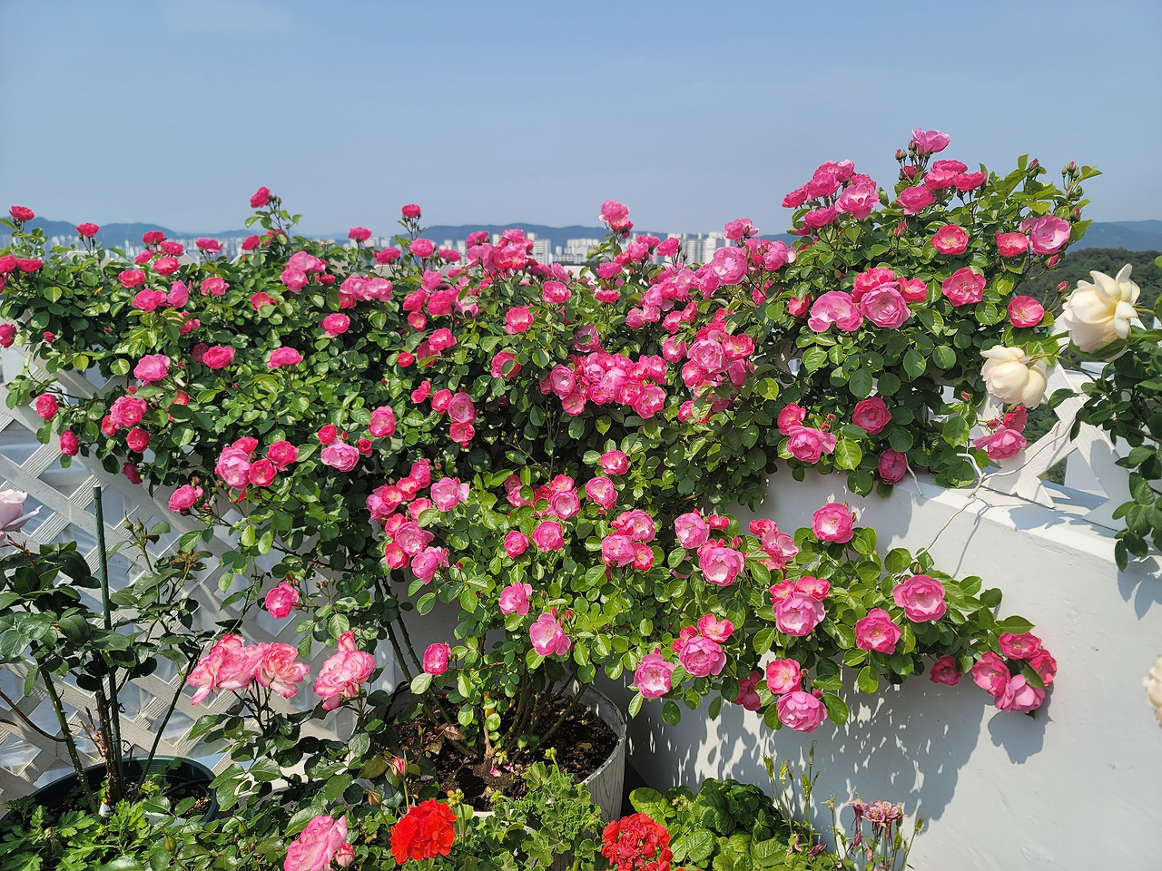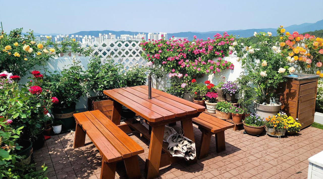 장미가 피기 시작한 오월의 옥상 정원