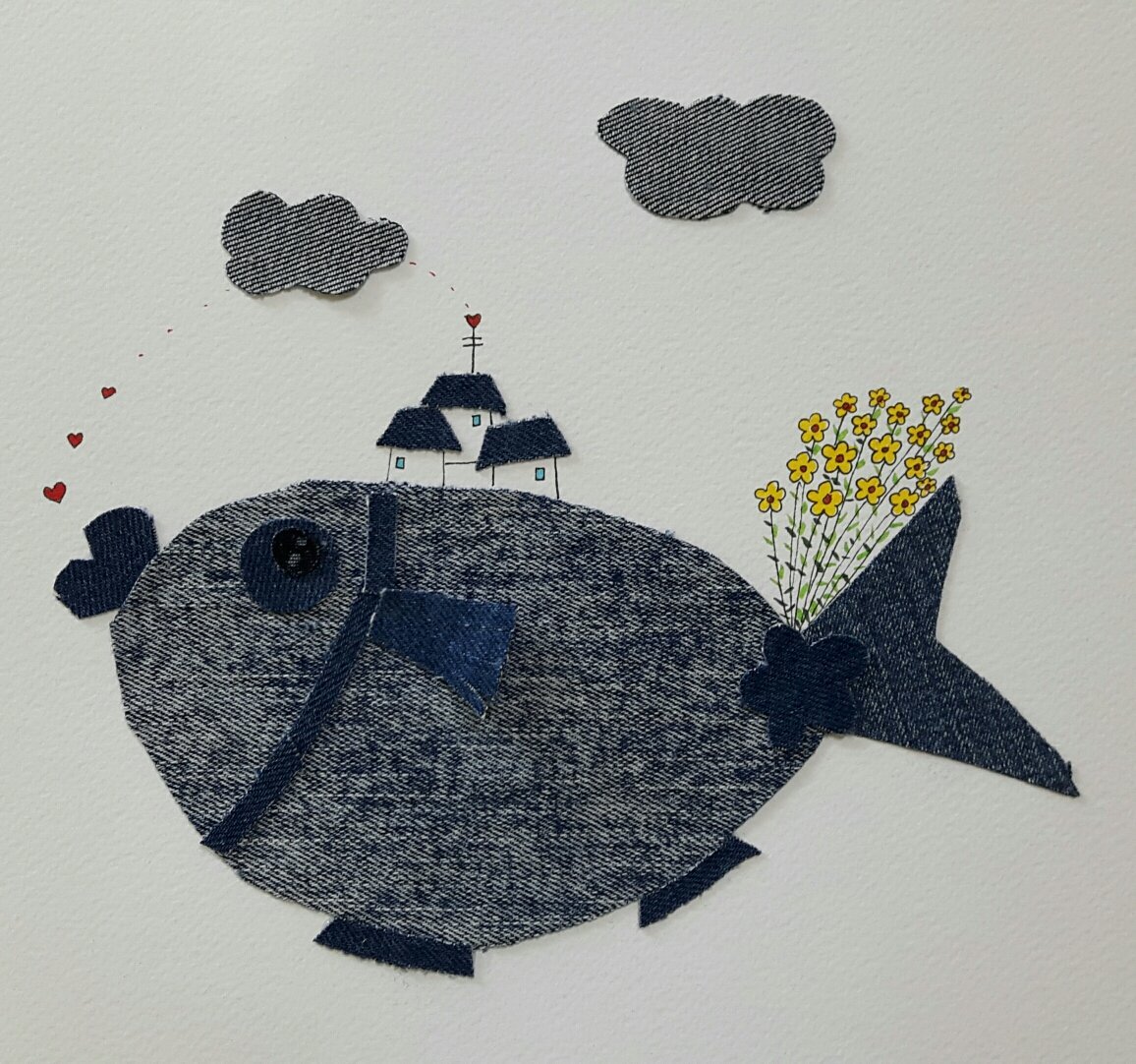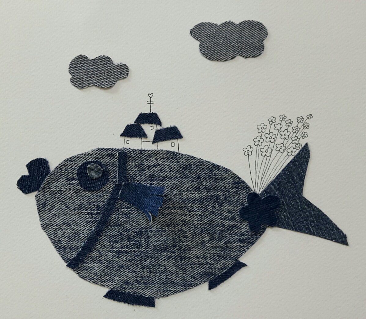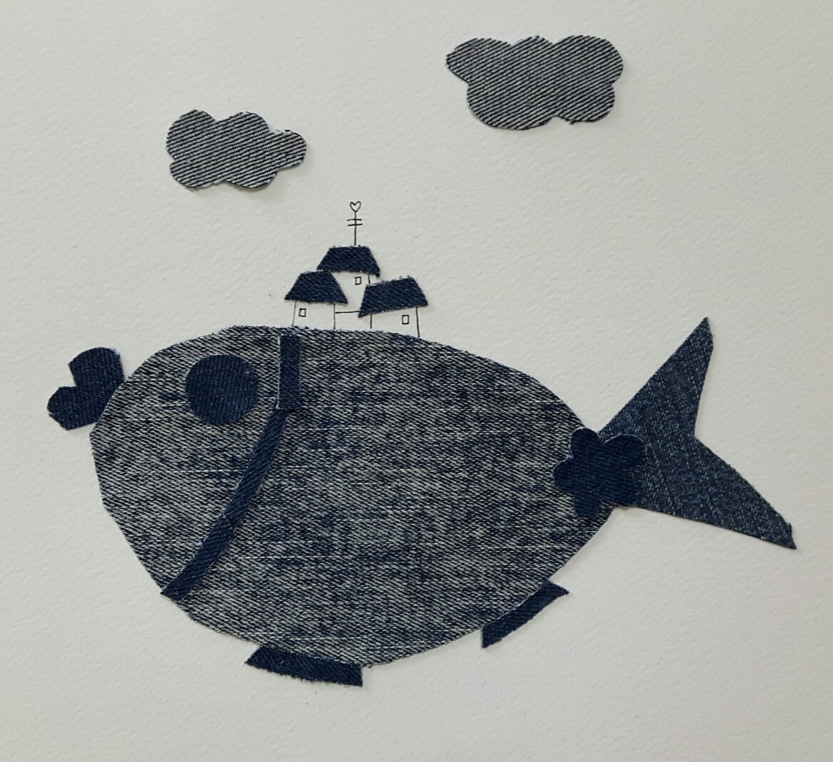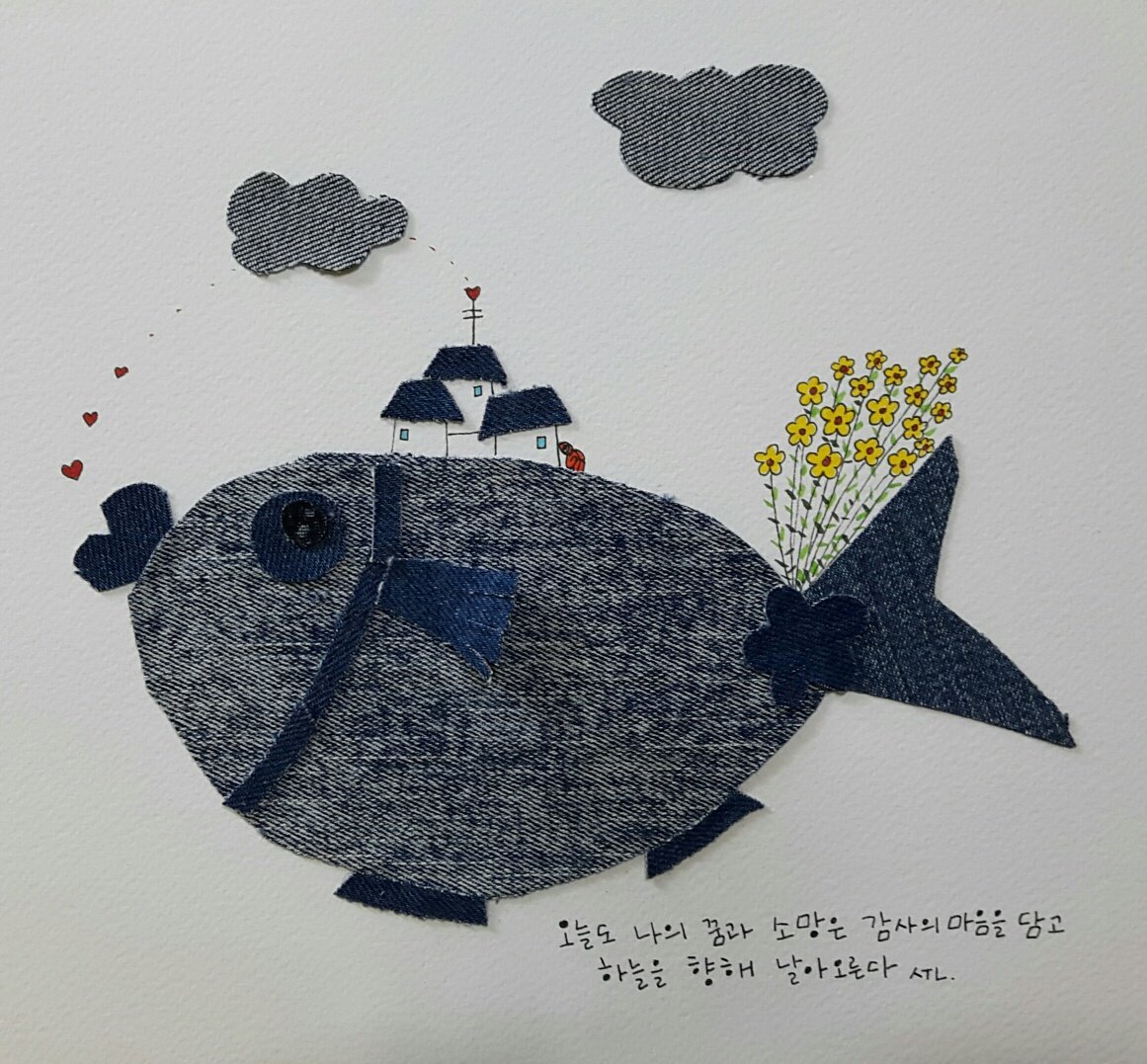 하늘을 나는 느낌의 물고기를 만들고 싶어 구름을 잘라붙였어요