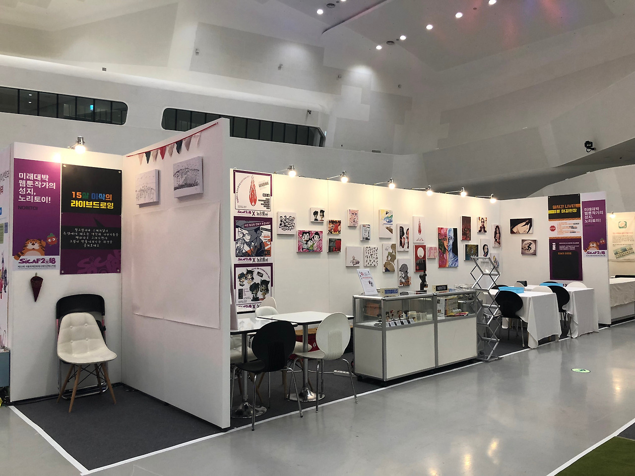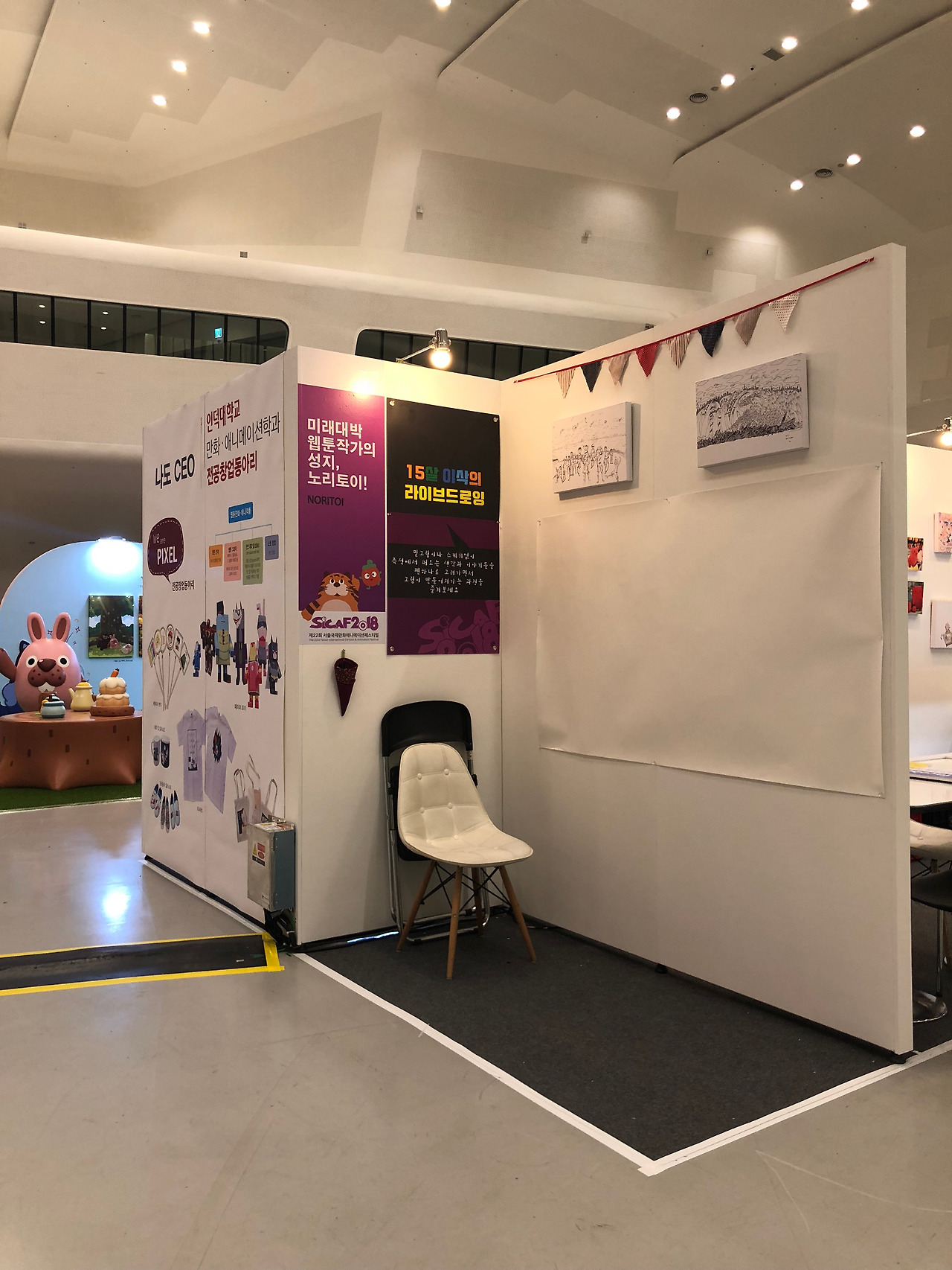 늘 신진작가 개발과 그 역량을 키워 주려 애쓰시는 작가이며 교수님이시다 2016년 큐레이터브이알 기획 전시의 인연으로 2017 픽마이웹툰전에 이삭을 초대해 주셨고 이번 13명 작가의 연합 부스에 이삭을 또 초대해 주셨다