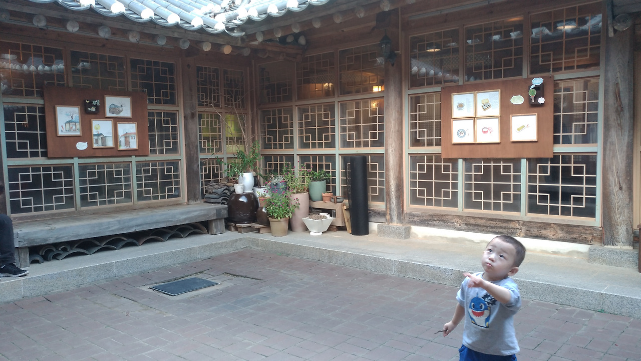 빙둘러 건물이 이어진 한옥의 기념관 안에 있는 네모 마당