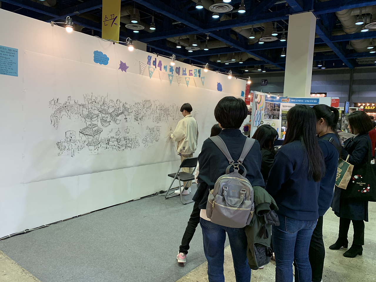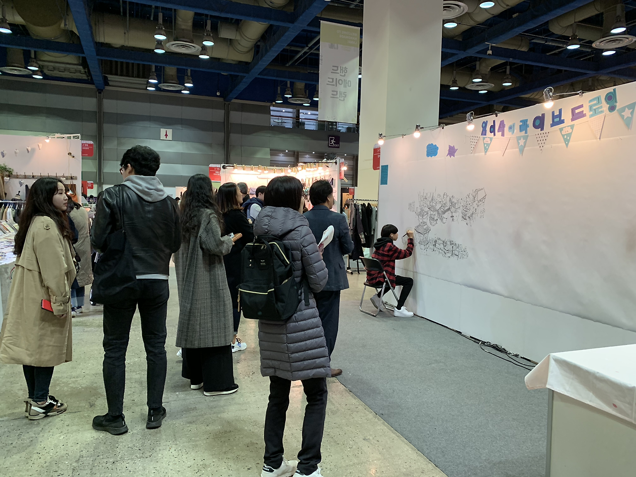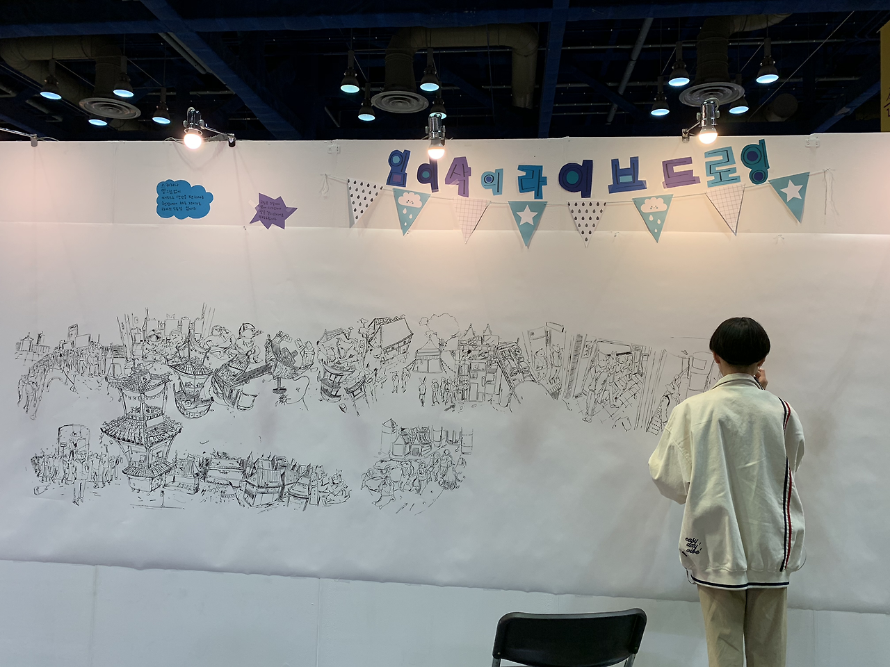 정신없이 이삭이가 그리는데 어떤 분이 한참을 지켜보더니 사진을 좀 찍어도 되는지를 물었다.