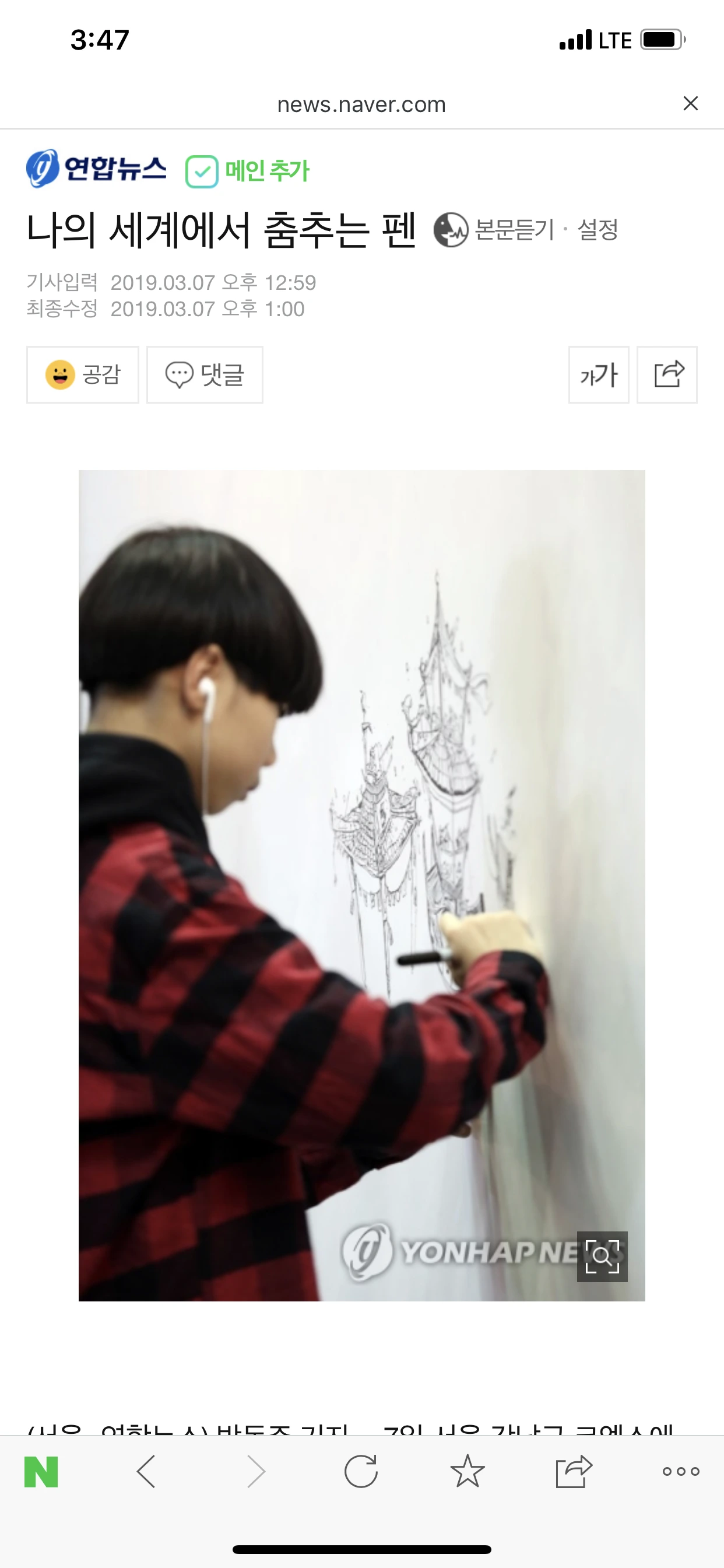 첫날의 이삭 드로잉 모습이 연합뉴스에 4번이나 나왔다