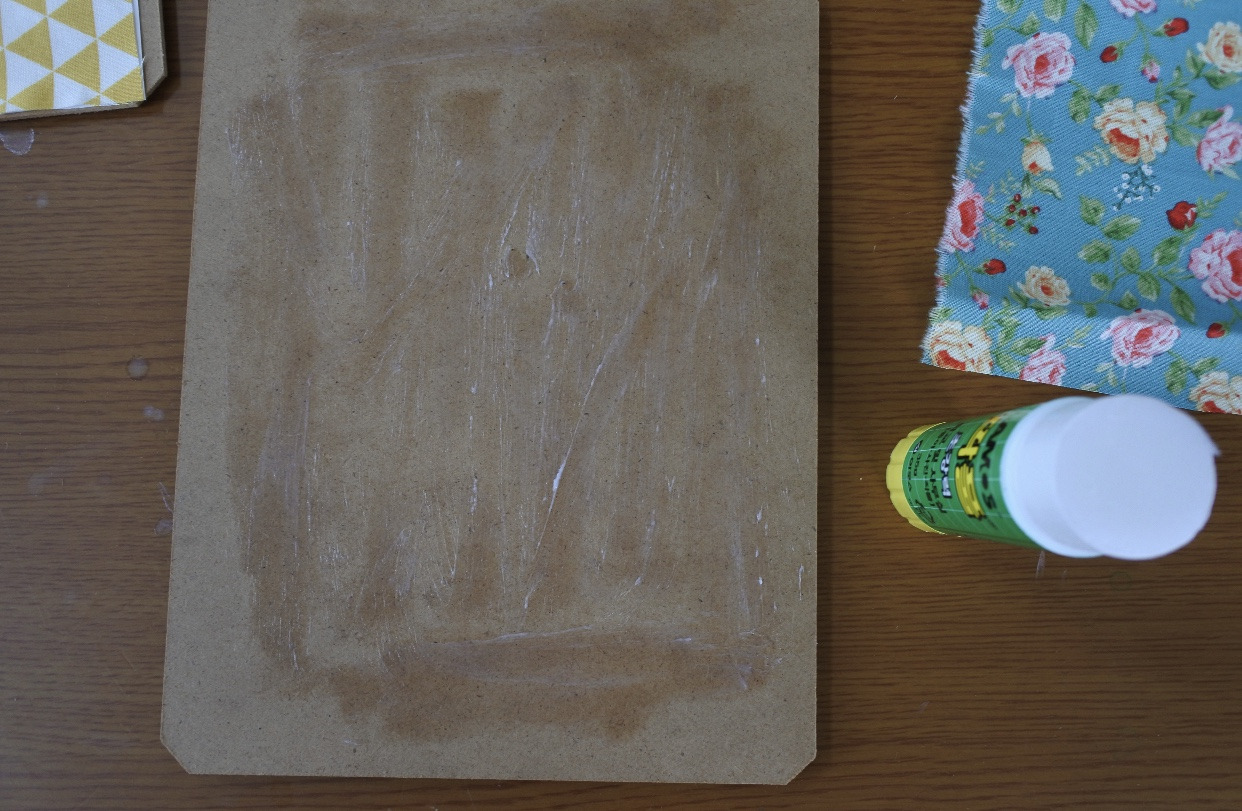 뒤판에 딱풀로 칠을 하고 천울 붙였다.