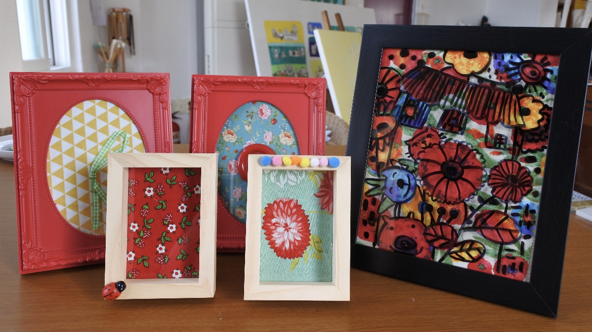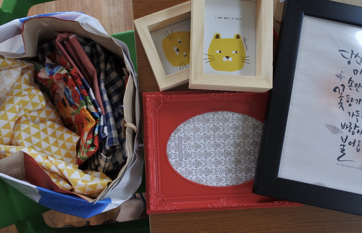 액자와 집에 모아둔 천 조각을 꺼냈다